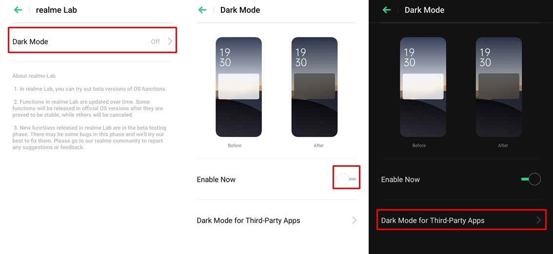 Có một vài ứng dụng khác có sẵn trên Google Play Store cho phép người dùng bật chế độ tối trong các ứng dụng của bên thứ ba. Nhưng chức năng Realme Labs đã thay thế nhu cầu ứng dụng của bên thứ ba để bật chế độ tối trên Realme X2 Pro.