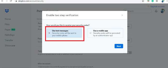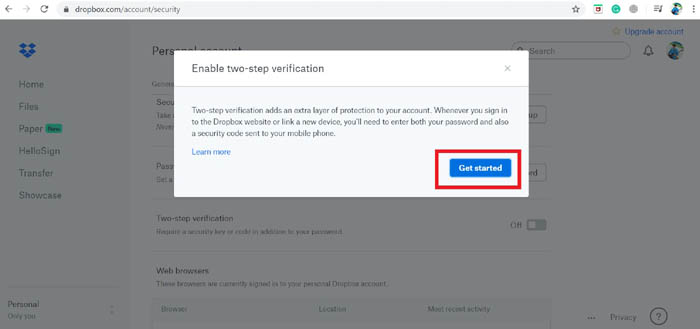 Kích hoạt xác thực hai yếu tố cho Dropbox