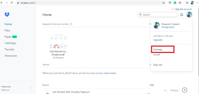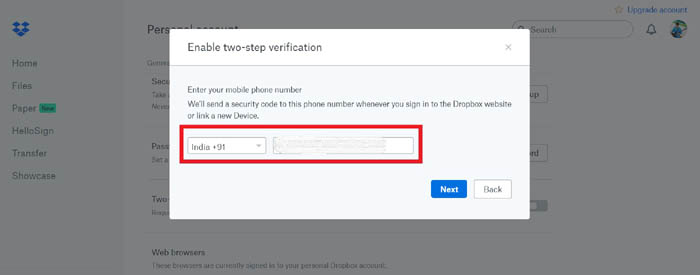 Bạn phải ghi nhớ điều này rằng không thể thực hiện xác thực hai yếu tố từ ứng dụng điện thoại thông minh. Vì vậy, chúng tôi sẽ sử dụng PC / máy tính xách tay và truy cập tài khoản Dropbox của chúng tôi để kích hoạt xác thực hai yếu tố. Ở đây chúng tôi đã đưa ra các bước chính xác mà bạn phải tuân theo để thực hiện điều này.