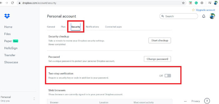Cách bật xác thực hai lớp cho Dropbox