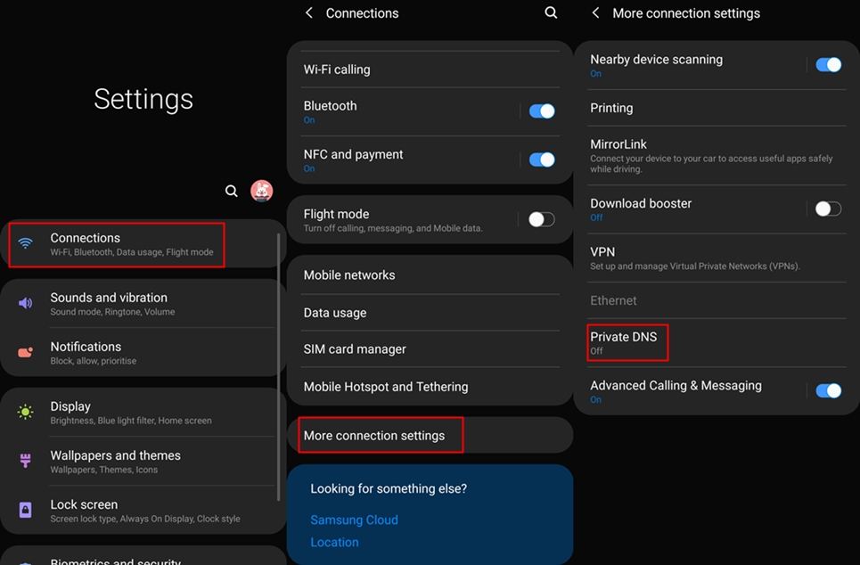 2. Tùy thuộc vào OEM của bạn, bạn sẽ thấy  tùy chọn DNS riêng. Nếu không, hãy tìm kiếm cụm từ “DNS” trong trang Cài đặt.