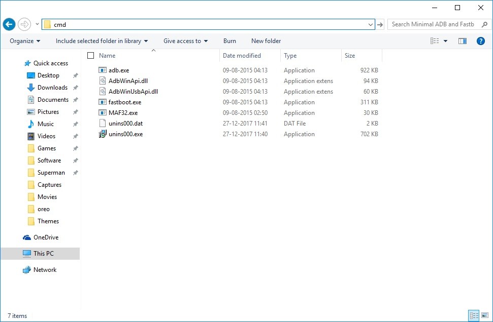 2. Kết nối điện thoại của bạn với PC bằng cáp USB, và sau đó khởi động ADB. Trên Windows, bạn có thể thực hiện điều này bằng cách chuyển đến thư mục adb và nhập cmd vào thanh địa chỉ. Trên Linux hoặc Mac, bạn chỉ có thể khởi chạy cửa sổ Terminal.