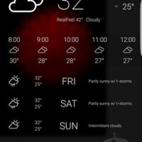 • Bấm vào biểu tượng thời tiết và vòng tròn trái sẽ đưa bạn đến màn hình dự báo thời tiết chi tiết.