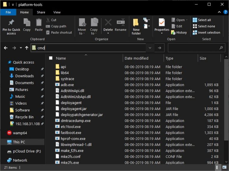 4. Tiếp theo, khởi chạy một dấu nhắc lệnh, Windows Powershell hoặc Terminal bên trong thư mục công cụ nền tảng được trích xuất .