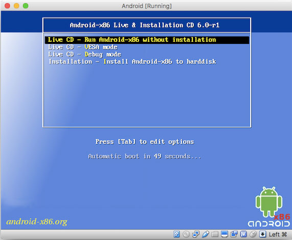 • Sau đó, bạn sẽ cần tải xuống phiên bản Android x86 của Android miễn phí. Đây bản Android được xử lý lại một số vấn đề để chạy được trên máy tính sử dụng chip xử lý Intel (nhưng không phải của Google). Đây là phiên bản mới nhất dựa trên Android 6.0 Marshmallow – android-x86-6.0-r1.iso  – tính đến bây giờ.