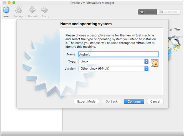 3. Nhấp vào vào nút New ở góc trên cùng bên trái của cửa sổ. Nhập tên cho Máy ảo của bạn. Bạn có thể đặt tên cho nó tùy theo ý của bạn. Nhưng bạn lên đặt tên sao cho khi nó hiển thị trên màn hình phù hợp và ý nghĩa. Ví dụ: