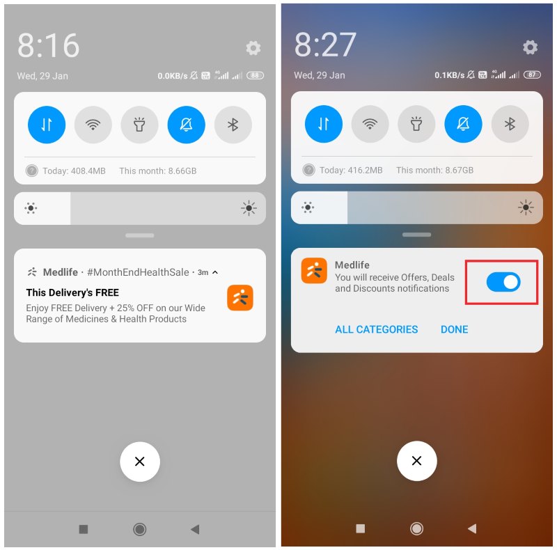 Bất cứ khi nào bạn nhận được thông báo đẩy, chỉ cần chạm và giữ thông báo. Nó sẽ hiển thị một hộp thoại nhỏ nơi bạn có thể vô hiệu hóa dịch vụ. Chỉ cần vô hiệu hóa dịch vụ và nhấp Xong để chặn thông báo đẩy trong các thiết bị MIUI 11. Đây là một trong những phương pháp nhanh nhất và dễ nhất để loại bỏ các thông báo đẩy không cần thiết trên điện thoại thông minh MIUI 11.