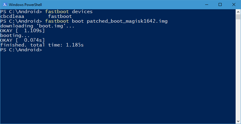 Ở đây,  patched_boot_magisk1642.img là tên của tệp hình ảnh khởi động đã tải xuống.