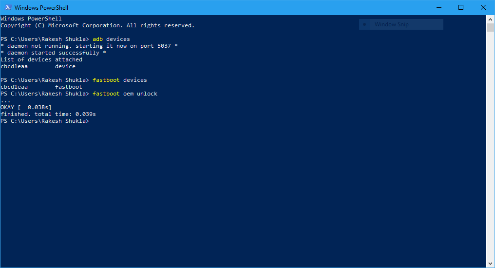 8. Nhập lệnh dưới đây để mở khóa bộ nạp khởi động nếu thiết bị của bạn được phát hiện. Hãy nhớ rằng thao tác này sẽ xóa mọi thứ trên điện thoại của bạn.