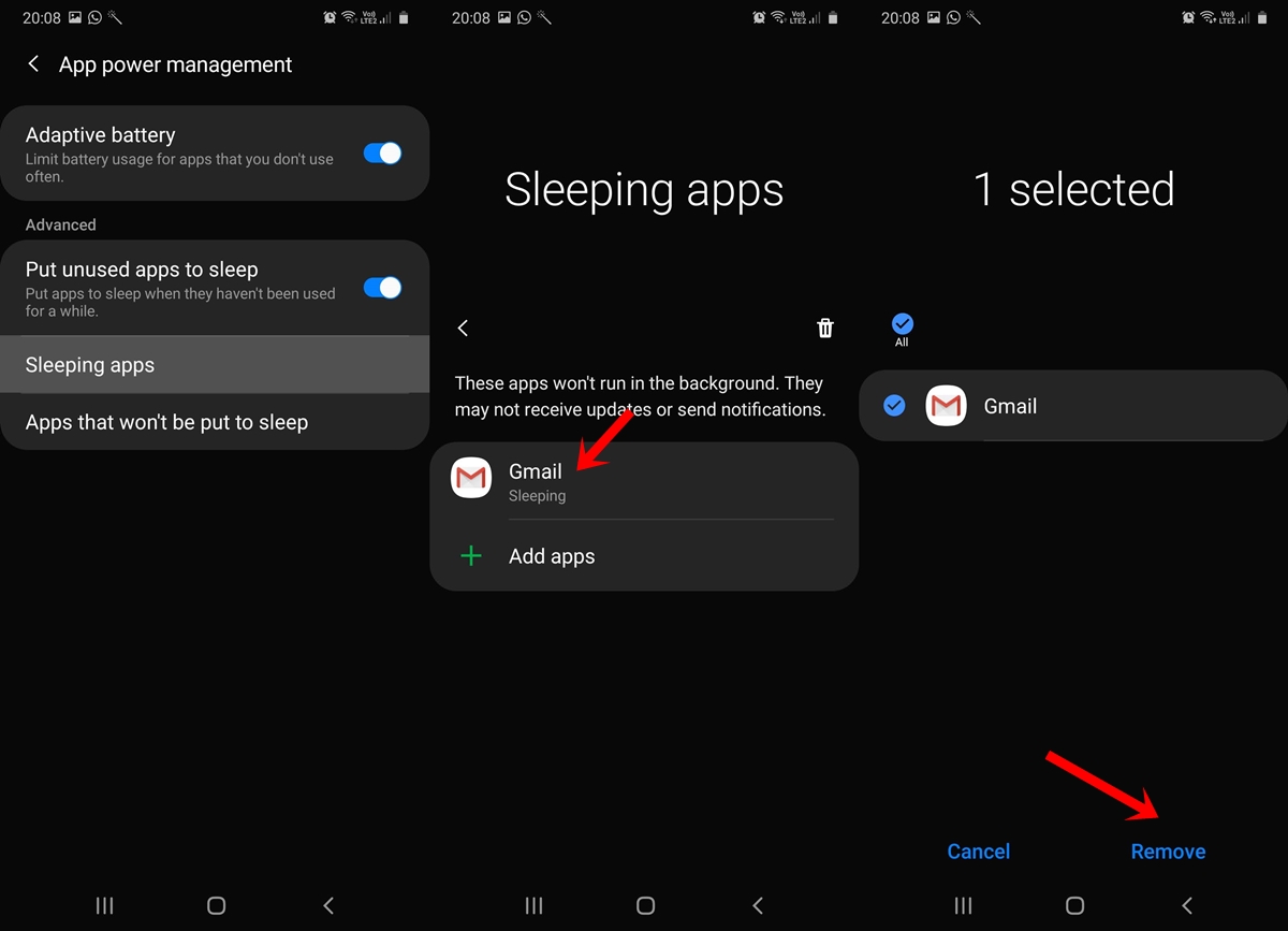 3. Ứng dụng sẽ không bao giờ được gửi đến trạng thái ngủ đông và bạn sẽ không bao giờ bỏ lỡ thông báo từ ứng dụng nói trên. Ngoài ra, các bước này không giới hạn đối với Gmail, nó có thể áp dụng trên tất cả các ứng dụng mà bạn đang nhận được thông báo bị trì hoãn trên thiết bị Samsung One UI 2.0.